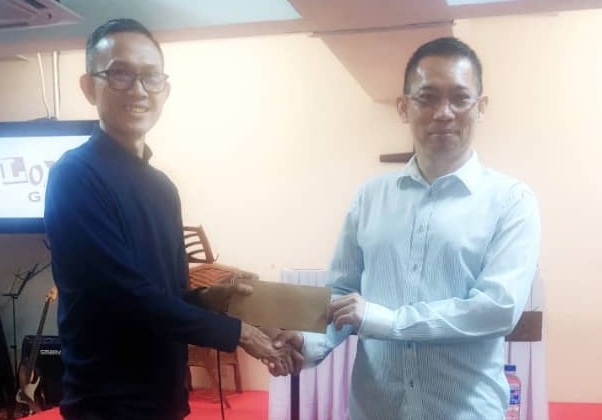 东马圣公会中心伊班委员会主席John Layang牧师赠予Albert Tang牧师感恩奉献。